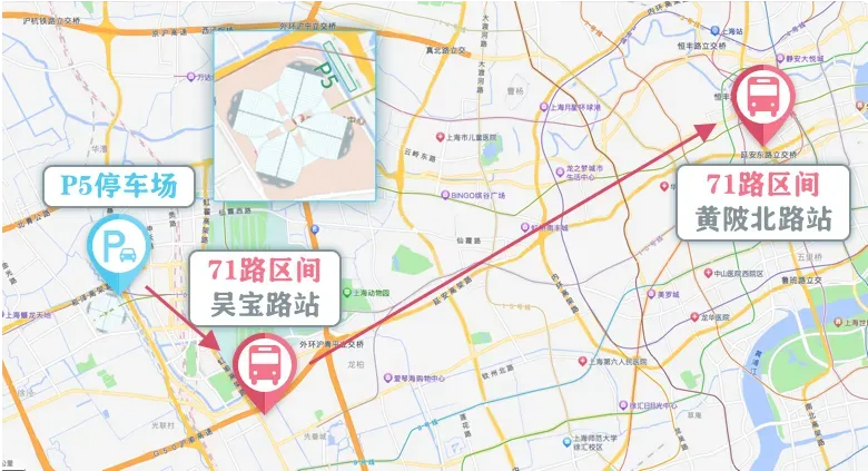 设站:71路区间延伸线P5直达吴宝路,途经吴宝路至黄陂北路各站(不经过申昆路枢纽站)