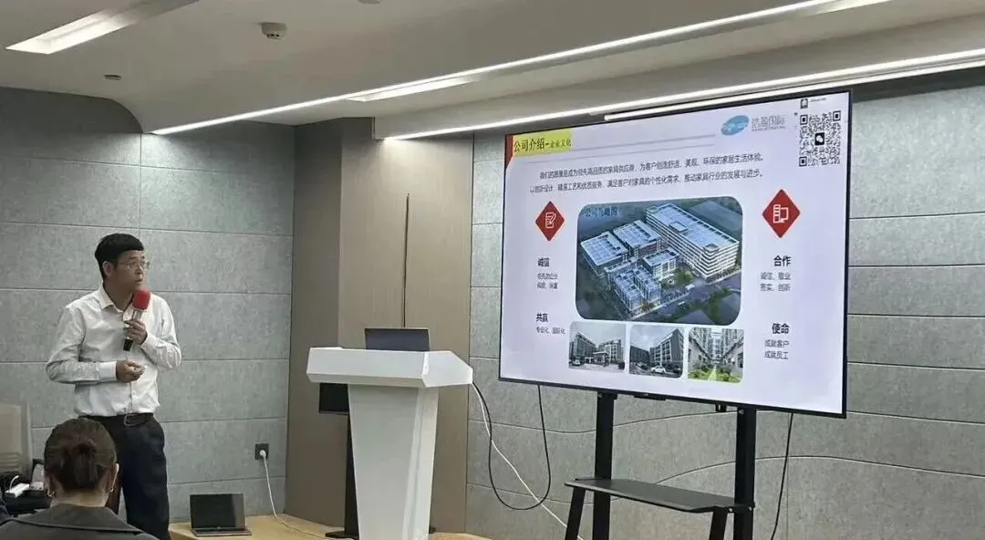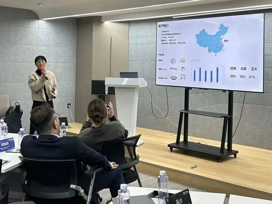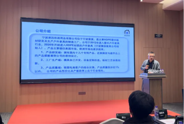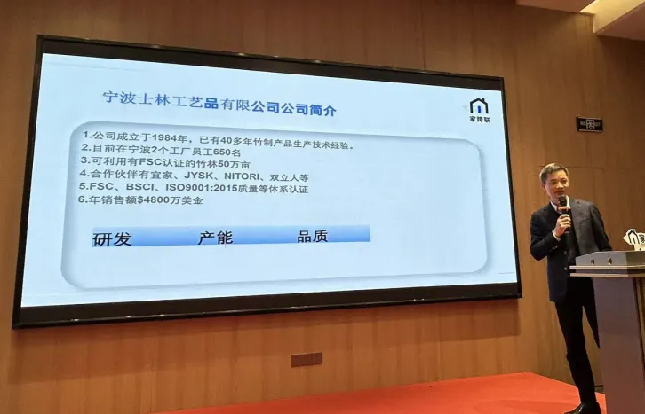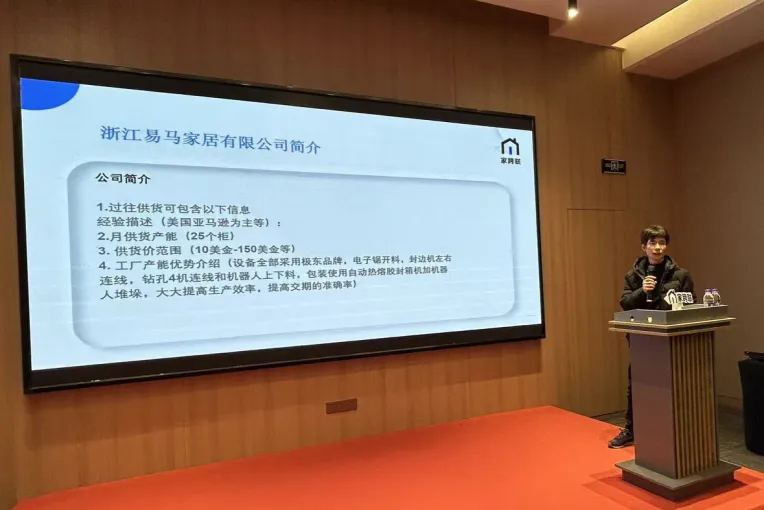 供应商展示环节中,各工厂代表聚焦核心产品的创新材质、跨境适配能力及产能优势,以 5 分钟精炼推介亮出自身核心竞争力。其中包括宁波凌迅、奈固智能科技、绍兴市嵊科金属制品、浙江川洋新材料、安吉聚合智能家居、宁波梦莹家居、海宁兄弟、宁波优创、宁波丽辰电器等。