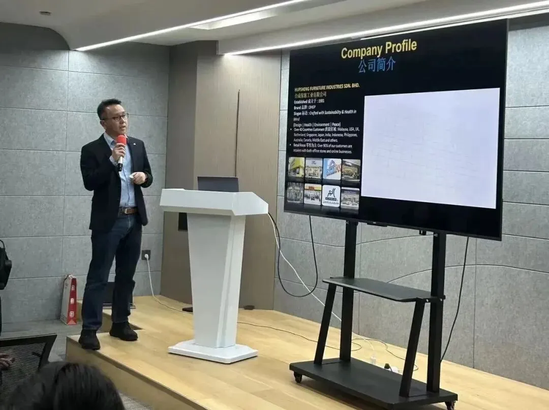现场 30 余家工厂上台发言,介绍各自的核心产品和产能及供货能力等,集中呈现家居领域的优质供给。其中包括山东力必拓软体家具、山东鲁丽家居、湖北省新深家居科技、宁波士林工艺品、浙江摩根集团、常州苏氏家居、浙江川洋、新浩盈(广州)进出口有限公司、泰州华晨曲木家具等,更有远道而来的马来西亚工厂负责人专程赴会,他们来自于HUPSHENG FURNITURE INDUSTRIES SDN. BHD.、LY FURNITURE SDN. BHD这两家优质海外工厂。
