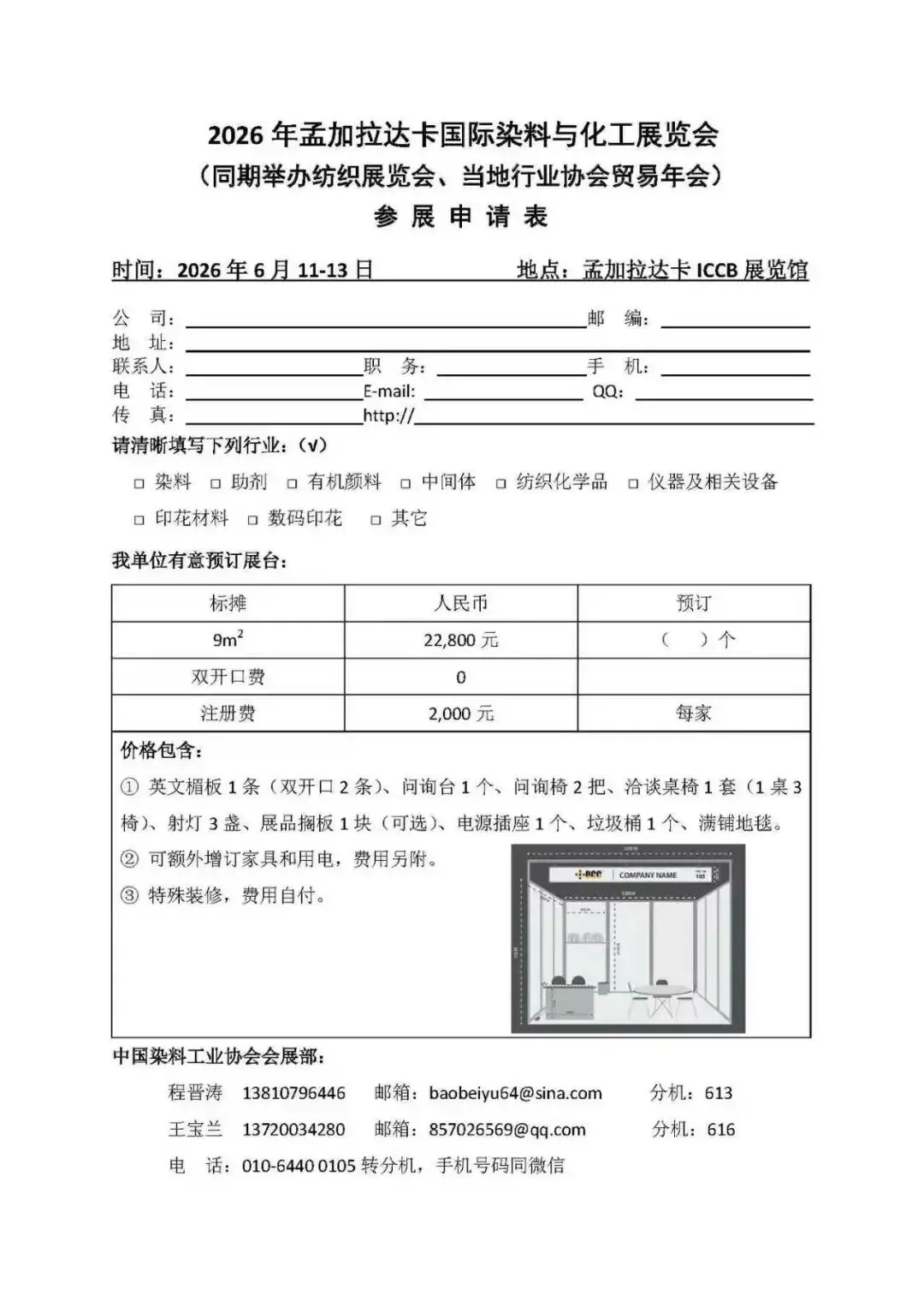 应广大会员单位的需求,考虑到孟加拉市场的重要性,2026年中国染料工业协会将组织行业内企业前往孟加拉参展。