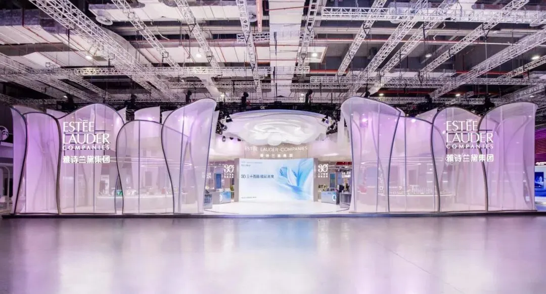 雅诗兰黛集团今年的展馆造型像盛开的花朵,寓意花开盛放。展台选用了可再生、可回收的环保纸和环保白纱,突出展馆可持续理念。同时,今年也是雅诗兰黛集团进入中国内地市场30周年,相关系列活动正式启动,聚焦与凸显30年来与中国消费者携美同行的不凡历程。