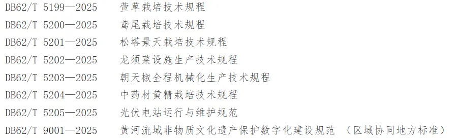 上述地方标准中《黄河流域非物质文化遗产保护数字化建设规范》自2026年3月3日起实施,其余地方标准自2026年4月7日起实施。标准正式文本统一由甘肃省标准化研究院负责印刷。