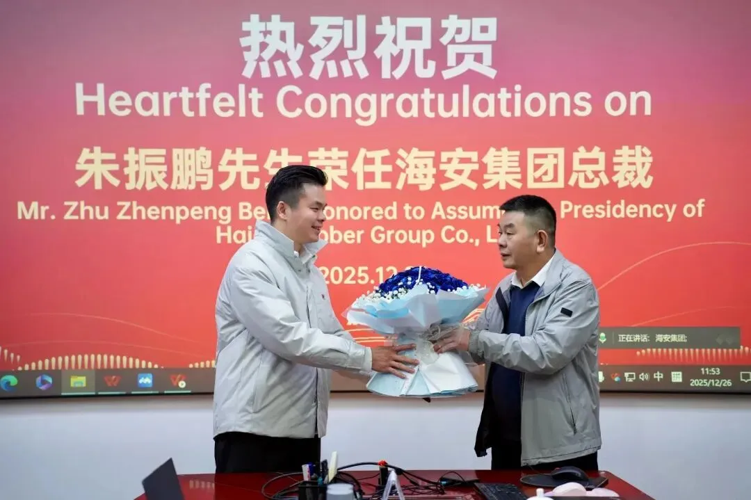 新任总裁朱振鹏为朱晖之子,出生于1992年,本科学历,自2013年加入海安体系,历任董事长助理、副总经理等职,拥有十余年基层与管理层历练,在海外业务布局中担任多国子公司董事,具备丰富的全球市场运营经验。