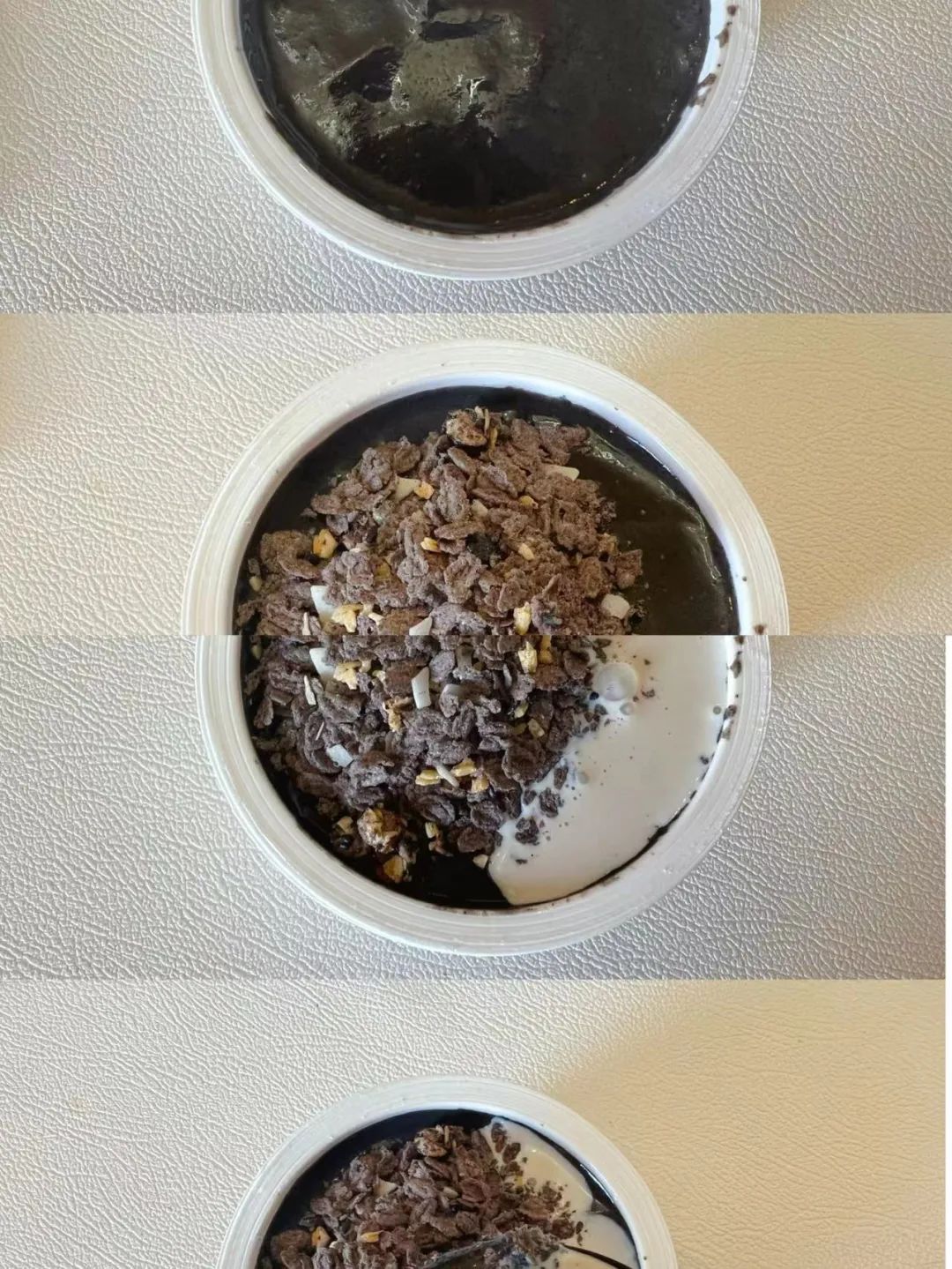 生椰谷脆芝麻糊添加生打厚椰浆和五黑谷物脆 在丰富口感的同时 增加营养物质 优质椰浆和黑芝麻糊创意搭配 再加上黑米黑麦黑豆黑小麦黑芝麻这五黑 让吃黑芝麻糊不再复杂 随身携带 揭盖即食 冬天还可以微波炉加热 将便捷营养进行到底