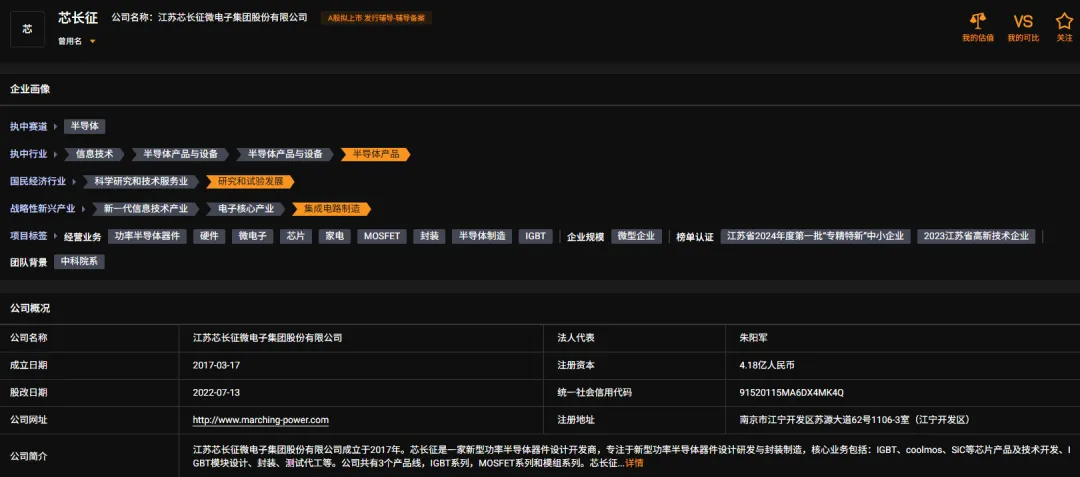 芯长征成立于2017年,是一家集功率半导体器件设计研发与封装制造、功率半导体器件测试设备研发与制造为一体的技术驱动型半导体企业, 销售的主要产品为功率半导体器件和功率半导体器件测试设备。