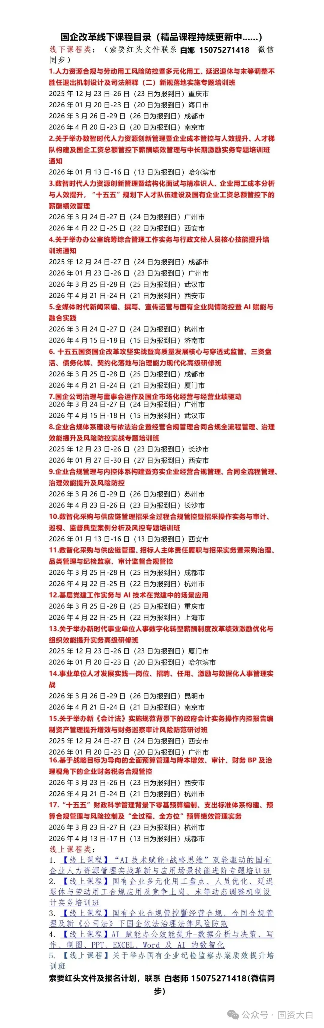 获取完整招生文件、日程安排、开票信息、报名表请联系白老师