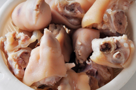2、花椒+水煮开,放入猪蹄焯水捞出拔毛后洗净沥干。