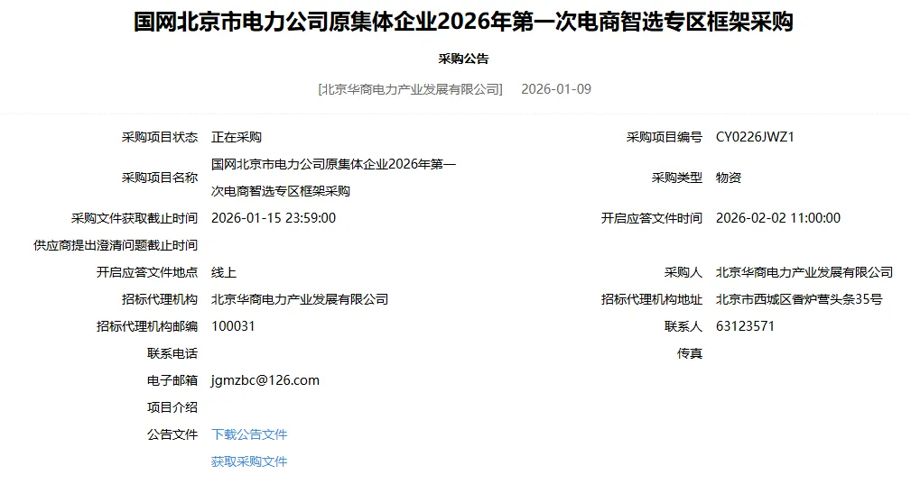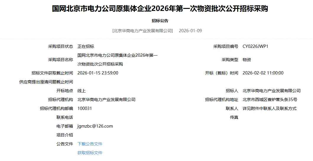 兵马未动,粮草先行!2026年江电云广告位招募中! 国网蒙东电力2026年原集体企业第一次物资框架竞争性谈判采购 冀北电力2026年子公司、战新产业、原集体企业第一次物资协议竞争性谈判采购 国网重庆市电力公司2026年第一次物资公开招标采购 国网江西电力2026年第一次物资类公开招标采购 国网江西电力2026年子公司、战新产业、原集体企业第一次物资类公开招标 国网湖北电力2025年第三次用户受托工程物资公开招标 国网湖北电力2025年原集体企业及子公司新增第五次物资类批次招标 国网河北电力2026年第一次物资类公开招标 国网河南省电力公司2026年物资类第一次公开招标 点击文字可直接跳转阅读