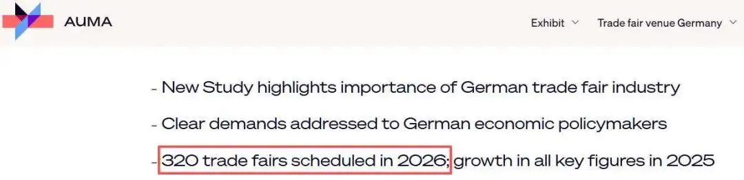 根据德国展览业协会(AUMA)最新数据,2026年德国计划举办约320场专业展会,较2025年持续增长,彰显其作为全球展览业核心的强劲复苏动力与不可撼动的平台价值。