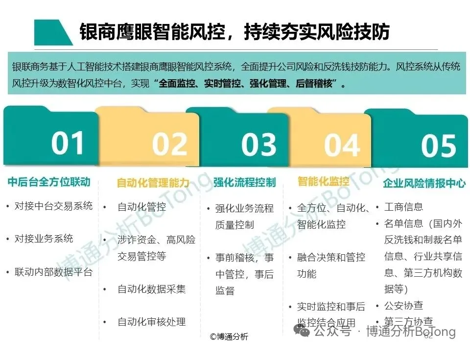 报告对银联商务基于AIGC的支付科技创新、“银商鹰眼”智能风控系统、银联商务商业信息管理系统进行了分析。