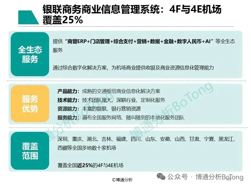 针对机场商业场景,银联商务整合了“商赢龙腾行业ERP+小U系列产品+金融云+智能收银终端+全民惠”等产品组件,实现软硬一体化、线上线下一体化、支付营销一体化、B2B与B2C供应管理一体化的综合数字化解决方案,为机场商业提供全流程、系统化的收银及商业资源信息化管理能力。目前,银联商务已与全国近25%的4F与4E机场达成商业合作,成为机场商业数字化转型的重要合作伙伴。