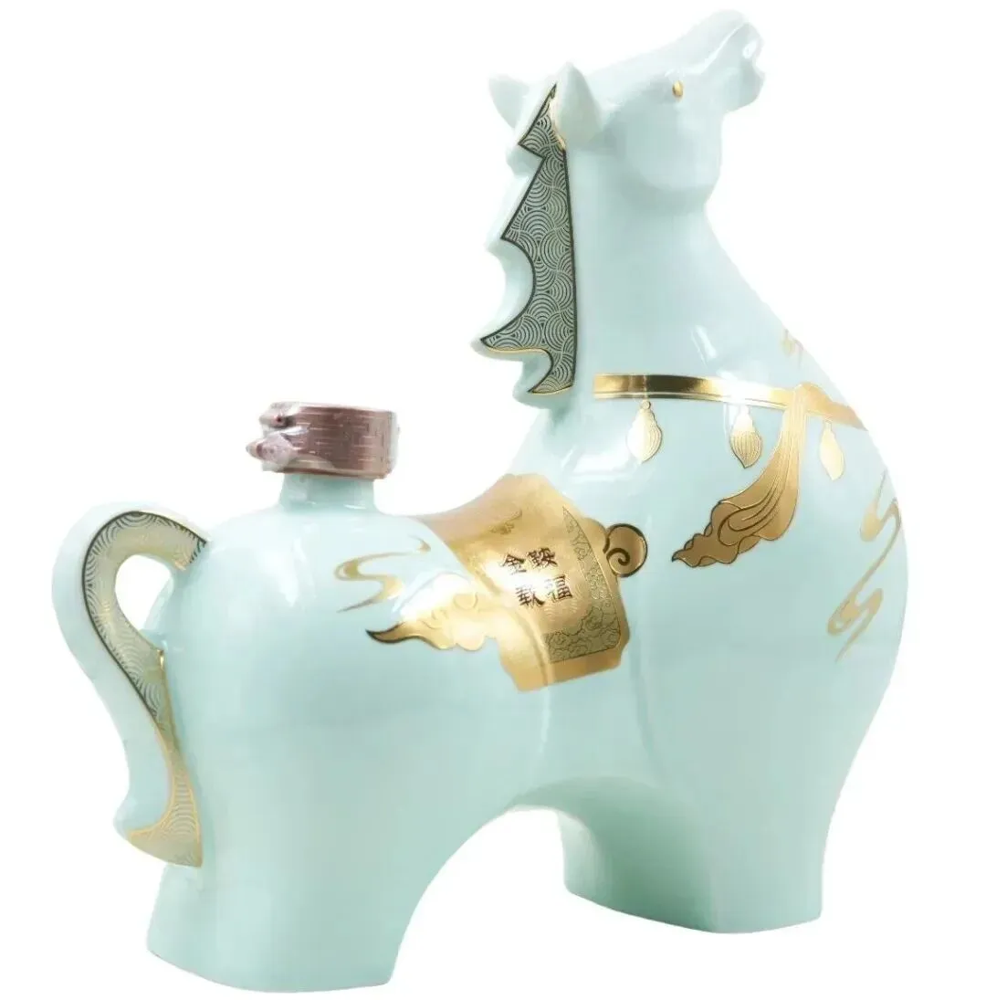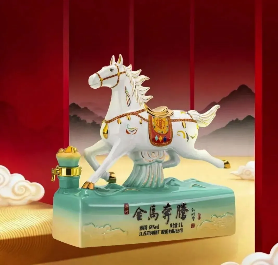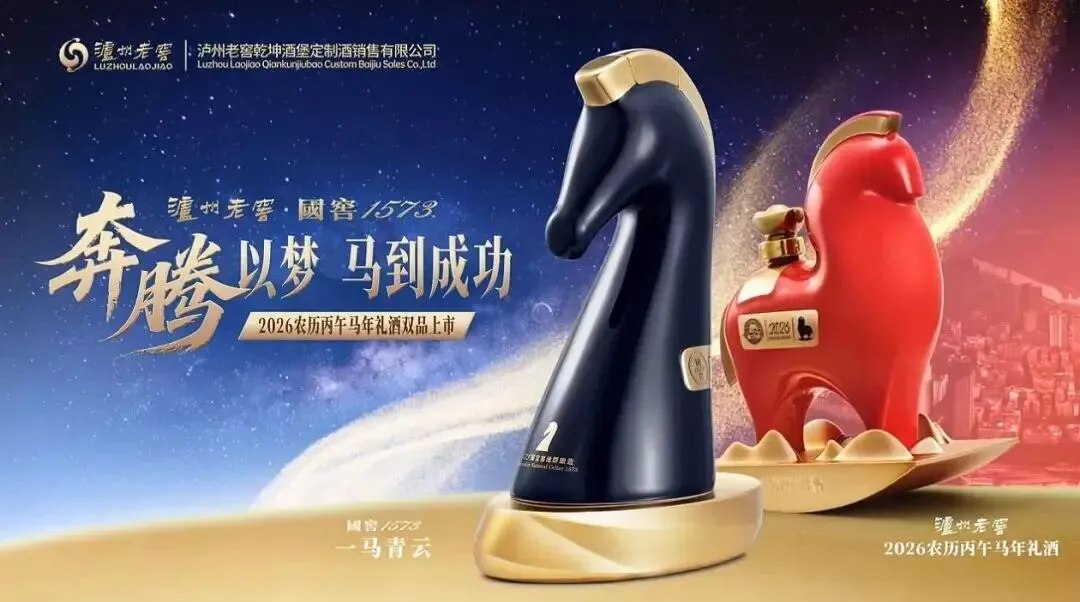 推出的马年礼酒与定制酒,以“中国红釉”为基调,有“摇摇马”创新设计,而“国窖1573定制酒一马青云”撷取西方棋马之形,诠释东方骏马之神,釉色源自国瓷永丰源非遗青釉技艺,澄澈如玉,温润生光,造型如数字“1”,象征"一马当先""一马青云"的进取气魄,马身线条流畅而富有张力,彰显高端品质。青釉工艺融合数字“1”造型,寓意进取。