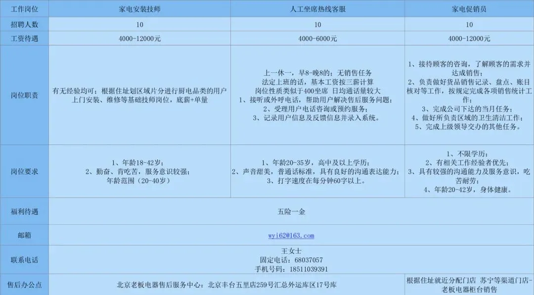 朝阳区人力资源公共服务中心推送岗位