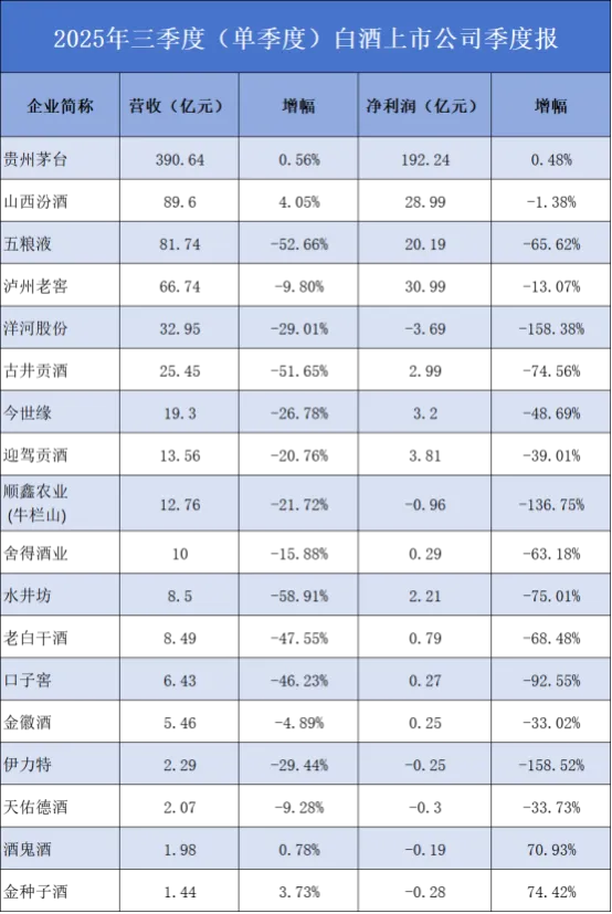 哪怕行业调整,这些头部企业凭借强大的品牌力和渠道掌控力,依然能保持相对稳定,三季度报中,贵州茅台、山西汾酒还实现了正增长。