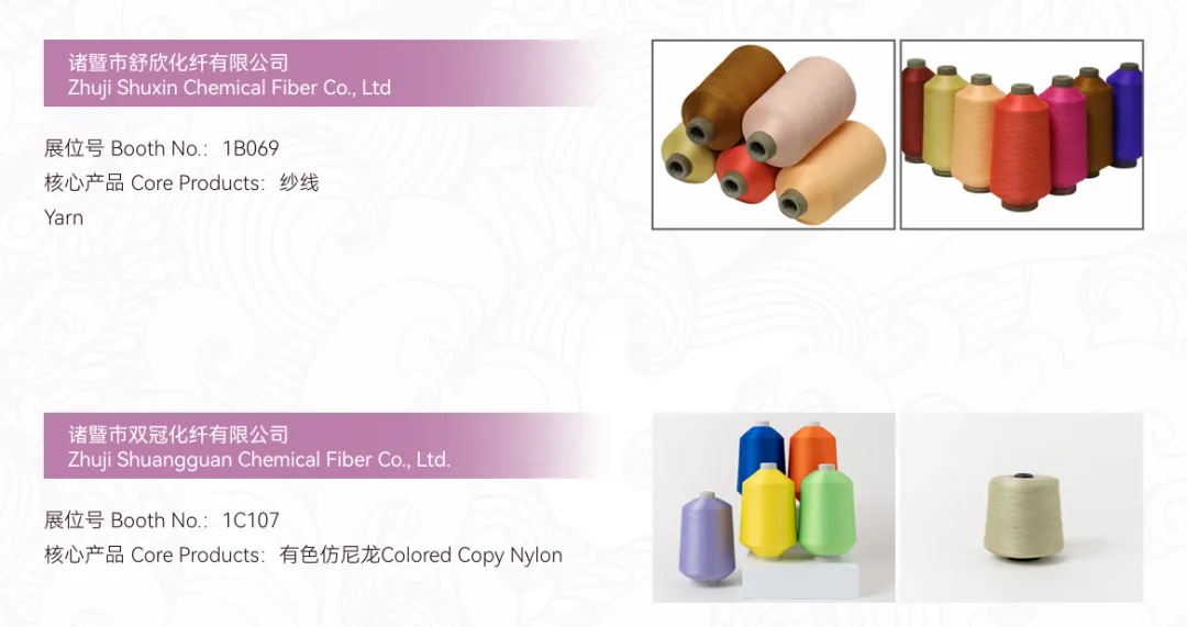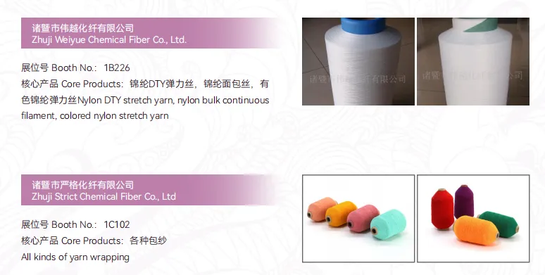 原辅材料展区:展示具有市场代表性、技术创新性的纱线、辅料、助剂等。
