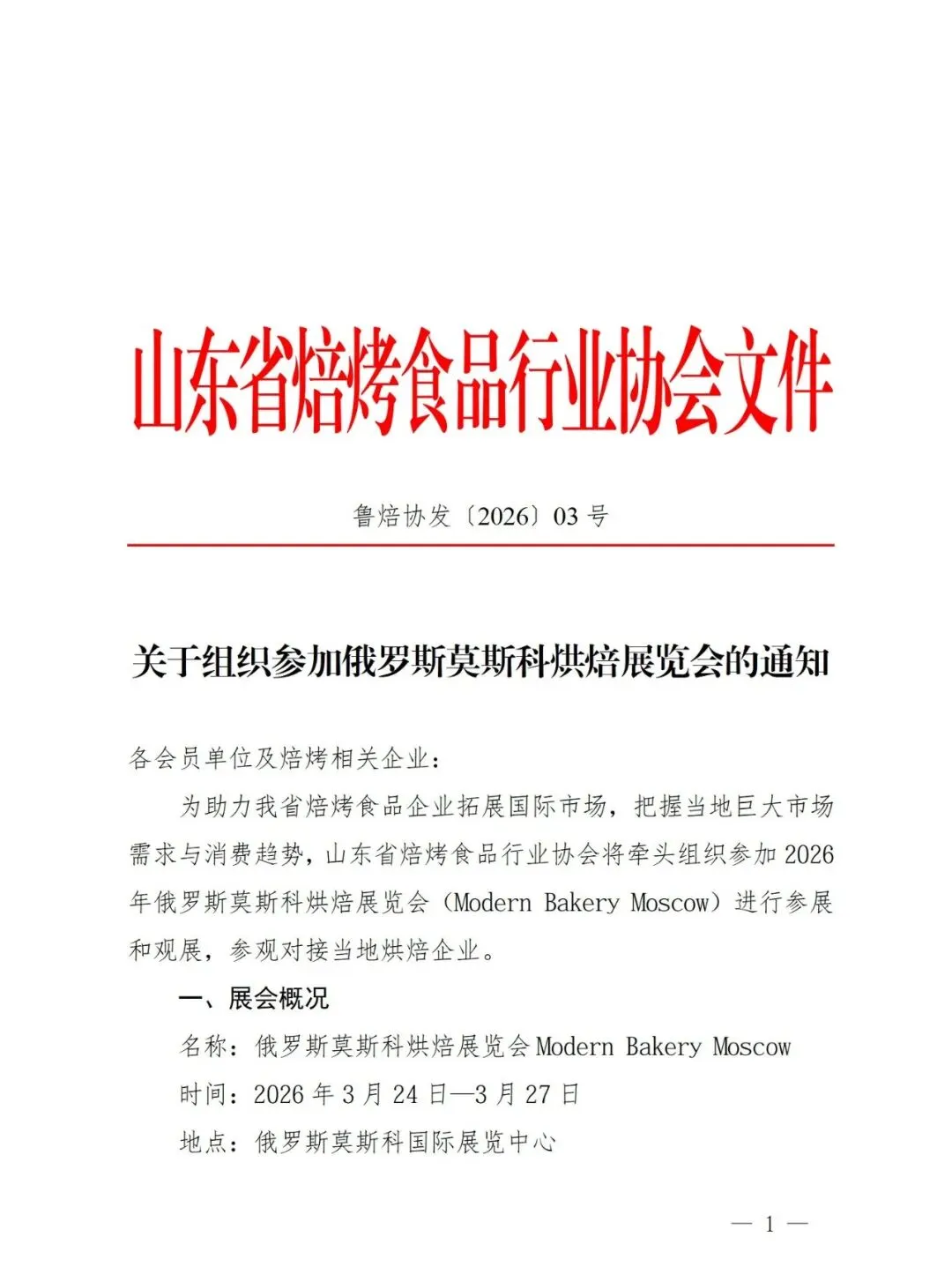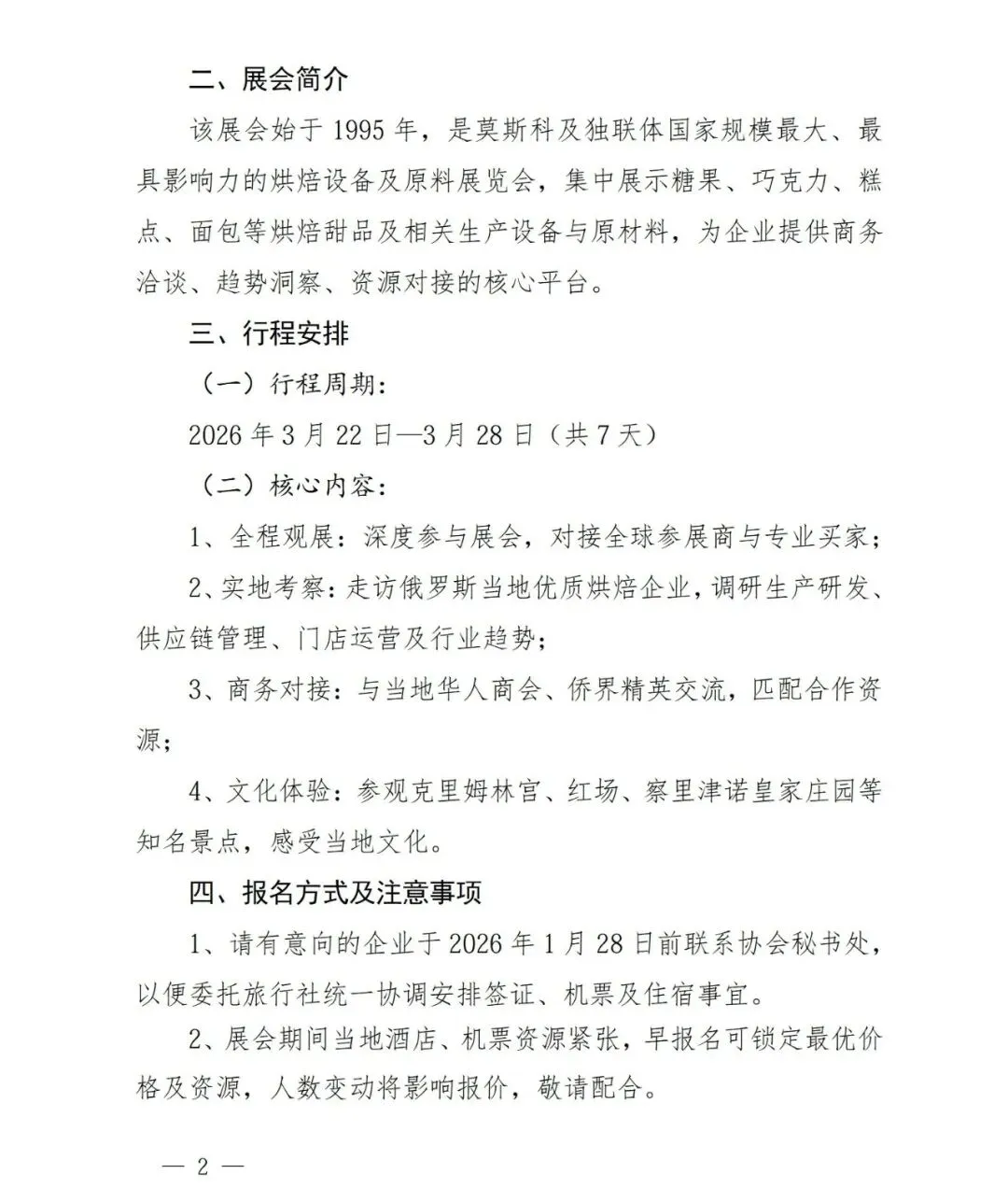 关于组织参加俄罗斯莫斯科烘焙展览会的通知