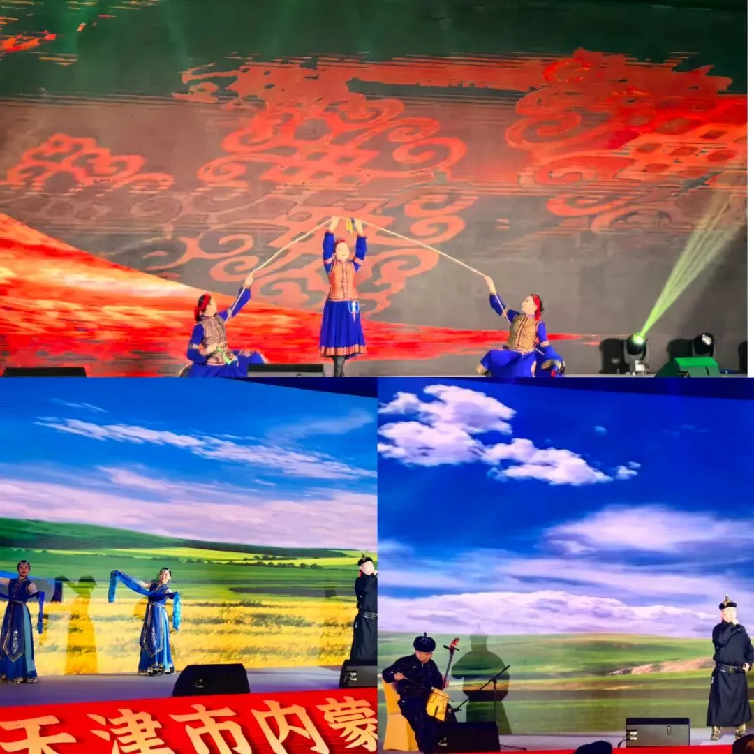 全国第一支乌兰牧骑——苏尼特右旗乌兰牧骑在展演环节成为舞台焦点,队员们先后带来《赞歌》男声独唱、蒙古长调、三人舞以及马头琴独奏、呼麦演唱等节目,以“红色文艺轻骑兵”的赤诚演绎草原文化,既为大会注入民族风情,更让天津嘉宾领略苏右旗文化底蕴,拉近津蒙情感距离。