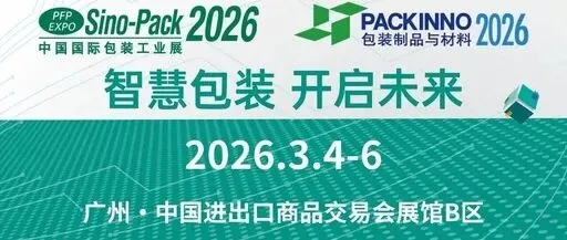 2026年3月4日至6日,第三十二届中国国际包装工业展览会(Sino-Pack 2026)暨2026中国(广州)国际包装制品展览会(PACKINNO 2026)(以下称为Sino-Pack/PACKINNO华南包装展)将在广州·中国进出口商品交易会展馆B区盛大启幕。