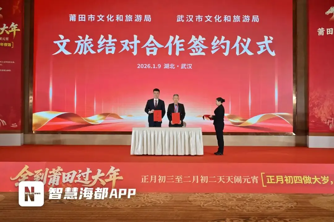 当天,多项重磅文旅合作协议成功签署。莆田市文化和旅游局与武汉市文化和旅游局签署文旅战略合作框架协议,双方将以妈祖文化与荆楚文化为纽带,开展文化论坛、非遗互展、旅游市场联合推广等常态化合作,共享旅游服务标准和管理经验,推出两地特色主题旅游产品,实现客源互送、市场共拓。