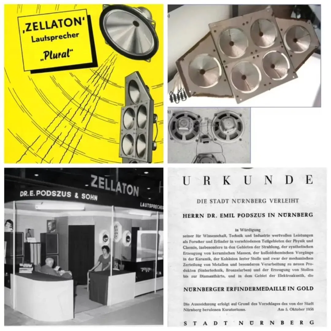 1881年在德国出生的Emil Podszus 博士大约在1930年开始在银箔上发泡并加入纸质的组合,尝试制造在他脑海中完美的三文治振膜,经历多年的努力,成功在1956年把专利的产品对外发布。