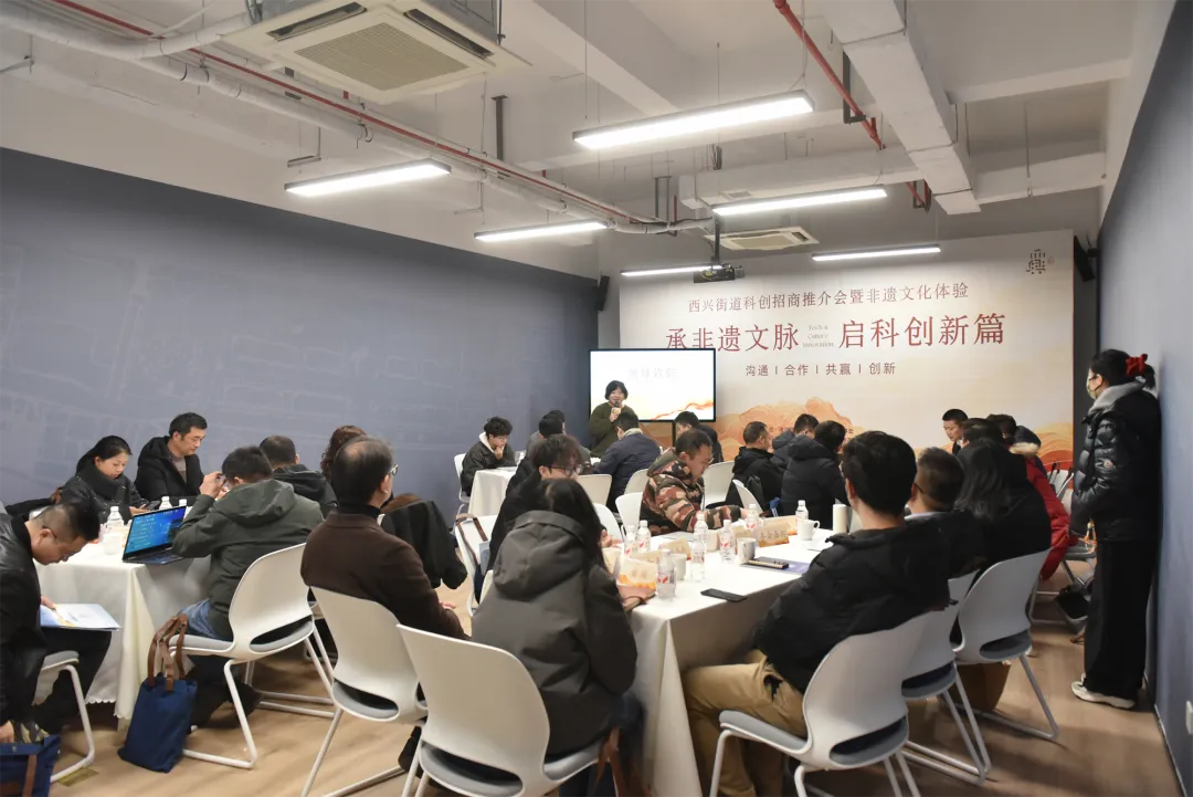 会上,西兴街道经济条线负责人介绍了街道当前经济发展态势与营商环境,并指出:“深厚的文化底蕴与开放的创新精神,是驱动区域高质量发展的双翼。非遗文化所蕴含的精益求精、持之以恒、勇于创新的精神品质,正是当代科创企业在发展中不可或缺的内在动力。”随后,街道代表系统阐述了西兴的产业布局、产业社区建设、楼宇园区发展规划及相关扶持政策,充分展现了西兴街道亲商、重商、优商的良好氛围,引发了在场企业的广泛关注与兴趣。