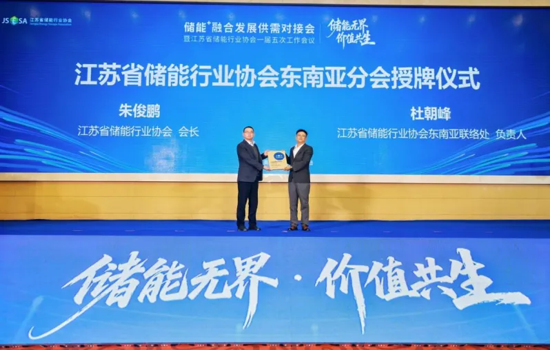 在会议上,江苏省储能行业协会东南亚分会的成立及授牌仪式隆重举行。此举强化了协会与国际同行的联系,促进了国内外储能技术的发展与应用,是协会服务企业“走出去”、拓展国际合作的重要举措。分会成立标志着协会对该区域的服务从2025年的“探索对接”阶段正式升级到2026年“深耕运营”的新阶段,将成为信息汇聚、资源匹配、项目落地的核心支点,助力中国储能企业在东南亚行稳致远。