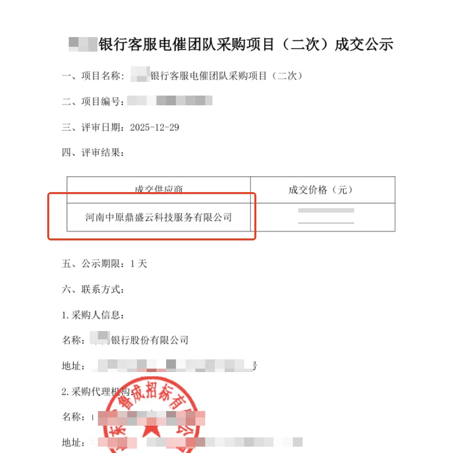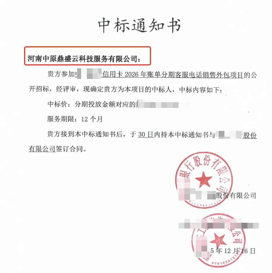 12月,硕果集中落地:顺利中标中原地区头部城商行信用卡账单分期客服电话销售外包项目;顺利中标山东某城商行客服电催团队采购项目;顺利续约长期合作的广西地区城商行电销外包业务;同时,河北某城商行特色客群经营项目、山东某城商行信用卡电销项目同一时间启动。虽密集但有序,感谢合作行信任,业绩承诺不负所托。