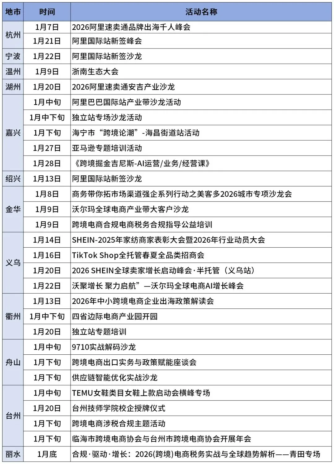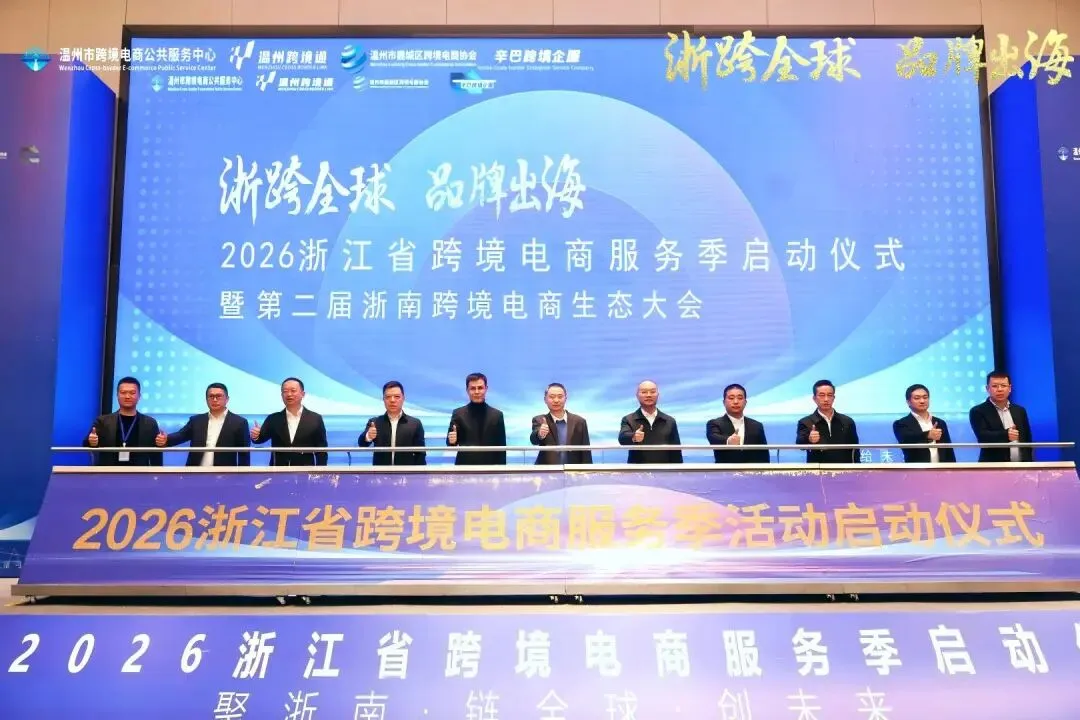 为深入贯彻落实中央经济工作会议和省委经济工作会议精神,以更大力度推进跨境电商高质量发展,1月9日,“浙跨全球 品牌出海”2026浙江省跨境电商服务季活动启动仪式暨第二届浙南跨境电商生态大会在温州成功举办,浙江省商务厅副厅长陈志成、温州市政府副市长陈宽出席活动,温州、金华、台州、丽水等市、县(市、区)商务部门、商协会、跨境电商产业园、大型平台企业、卖家、服务商等1000多人出席活动。