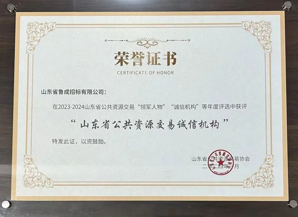 2025年,公司荣获中国招投标协会基业长青单位,招投标行业发展45年·行业先驱奖、国企采购项目招标代理十大领军企业,蝉联中国招标代理综合实力百强、国有招标代理机构30强,荣获《中国招标》专业驱动暨优化营商环境示范单位、交易领域专业驱动型示范单位、省住建厅招标代理单位3A信用评价、山东省公共资源交易诚信机构等称号。