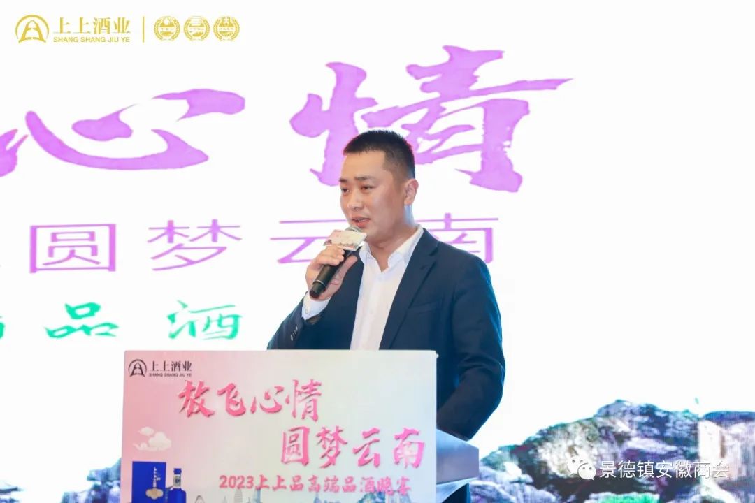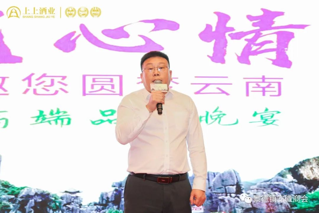 4月2日晚,中国瓷都——景德镇,由安徽亳州上上酒业集团主办的“放飞心情--圆梦云南”高端品鉴晚会,在景德镇景瀚大酒店隆重举办。安徽省亳州上上酒业营销中心总经理慕效中致欢迎词、景德镇安徽商会会长刘福领出席晚宴并讲话、景德镇商会商会常务副会长、众安驾校校长和志强发言。全市近500名上上品酒消费客户齐聚一堂,品美酒、话友谊。