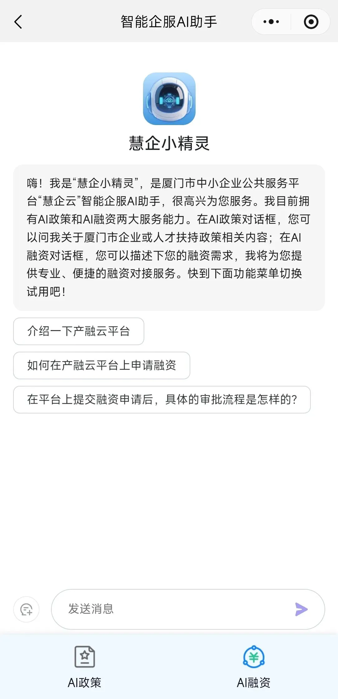 基于“慧企云”平台汇聚的银行、担保、创投等金融机构资源,AI助手将为您筛选最匹配的融资产品,并提供申请指引。