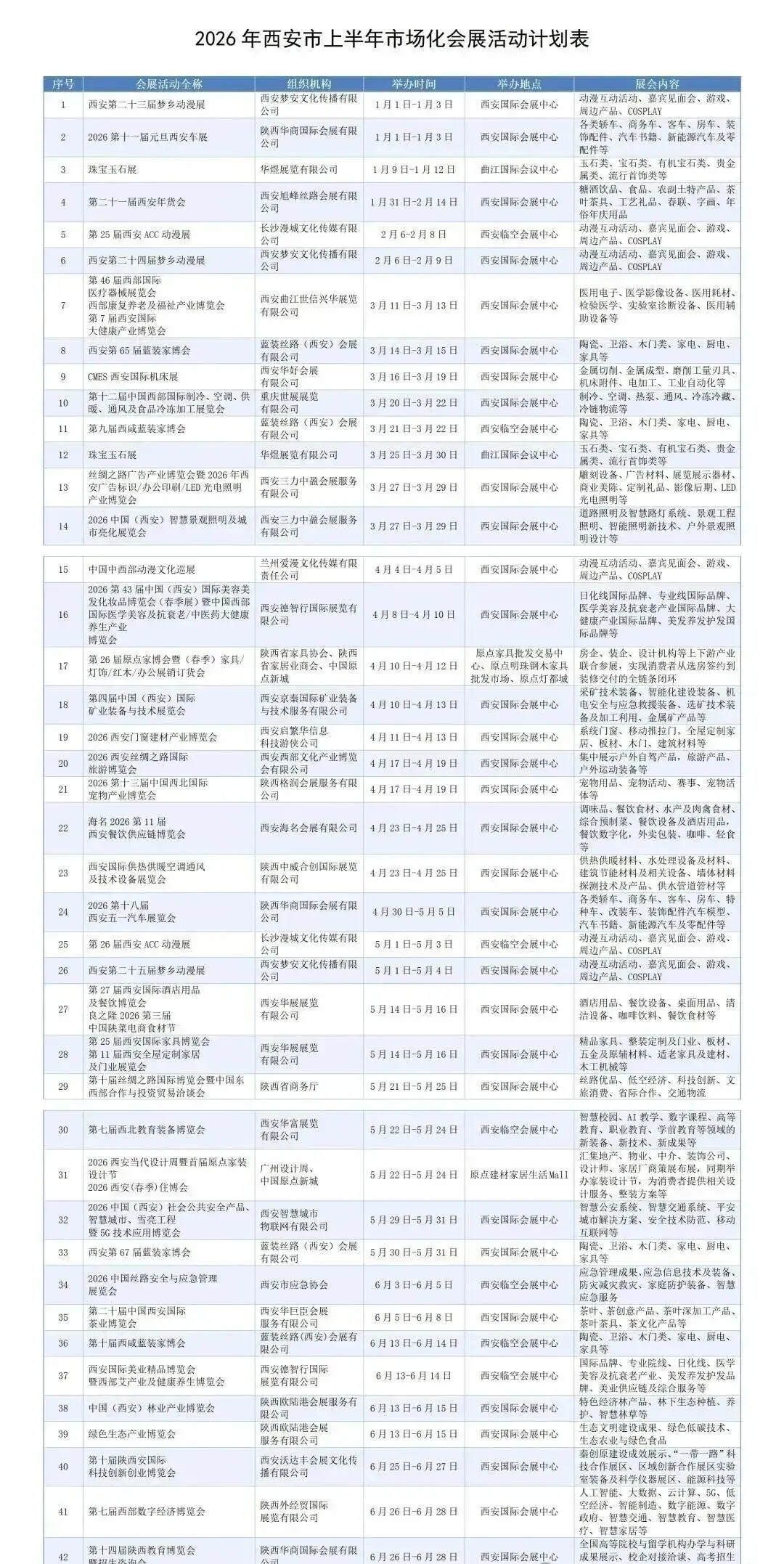 根据《西安市会展业促进条例》规定,现发布2026年西安市上半年市场化会展活动计划。