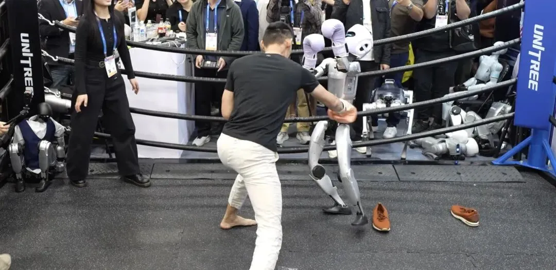沉浸体验:演示者亲自上阵与机器人对打,发现其动作力量感十足且精准,远非普通的玩具可比