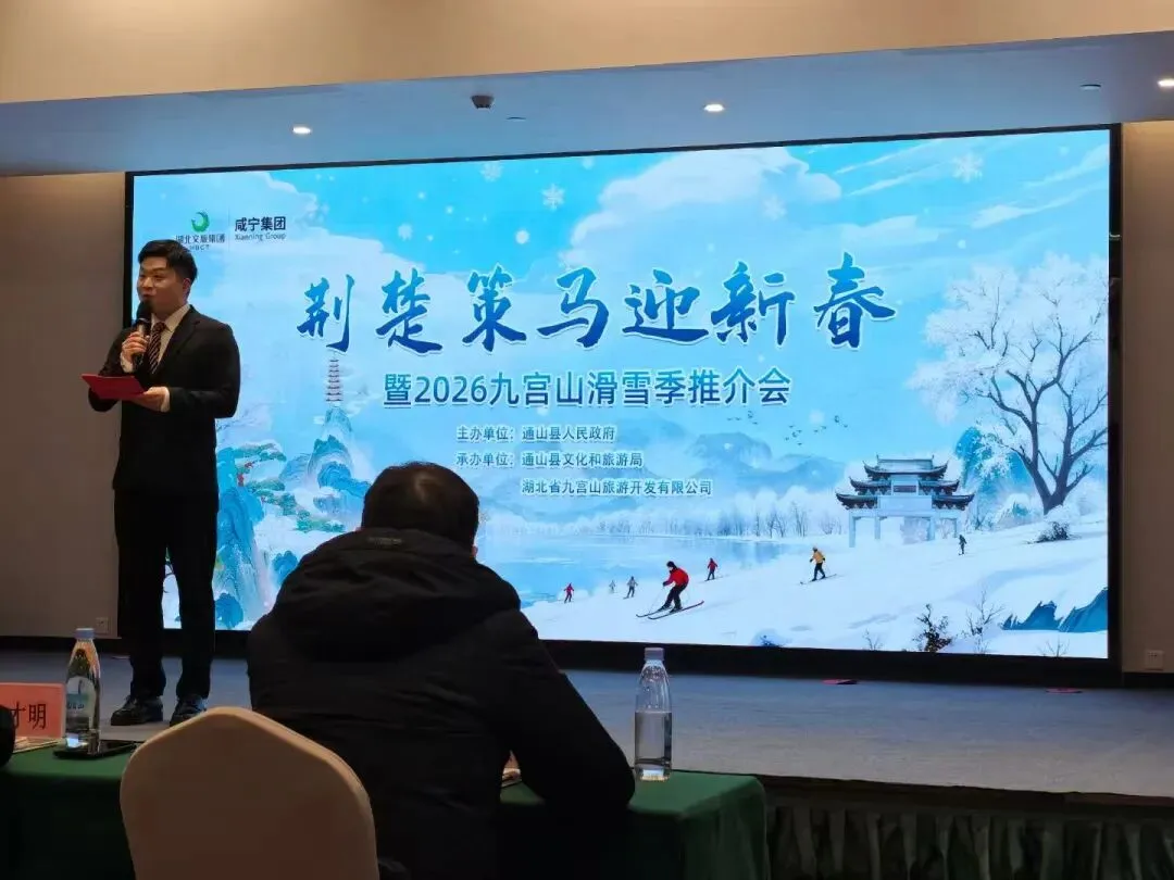 本次推介会是通山激活冬季旅游市场、深化文旅渠道合作的重要举措。活动筹备期间,通山聚焦产品升级与合作拓展,推出多重利好举措:一方面,升级九宫山滑雪季产品套餐并发布专项优惠政策,创新设置“1元抢通山惊喜盲盒”互动福利,同时安排实地踩线活动,邀请嘉宾亲身感受冰雪魅力;另一方面,搭建跨区域、跨业态资源对接平台,联动县内优质景区,特邀咸宁易汤温泉养心谷、海南康养旅居研学项目进行特色推介,为“冰雪+温泉”“冰雪+康养”“冰雪+研学”等合作模式搭建桥梁。