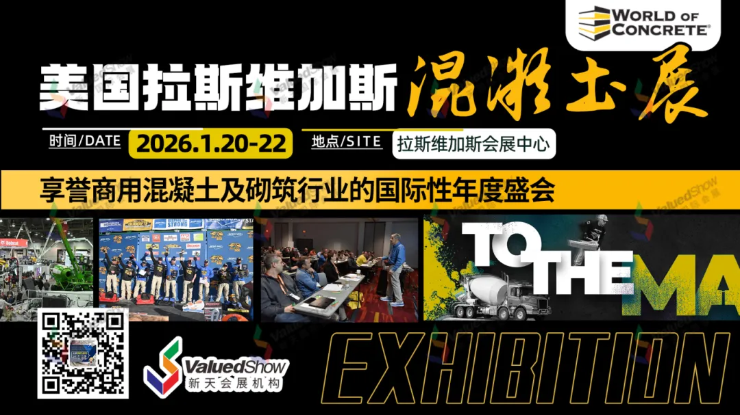 新天会展再次组团出发!直击 1500 + 企业、6 万 + 精准买家与前沿技术,紧抓深耕北美基建市场的黄金机遇。? 全球混凝土行业的年度盛宴,北美市场的黄金入场券!2026年美国拉斯维加斯混凝土世界博览会(World of Concrete, WOC)即将启幕,作为拥有50余年积淀、全球规模最大的混凝土及建筑机械专业展会,这里汇聚了行业顶尖资源、前沿技术与精准买家,是企业拓展国际版图、深耕商业合作的必参盛会。这份超全参展指南,助你高效备展、满载而归!