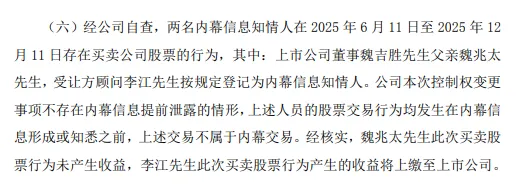 此外,公司披露的内幕信息知情人交易核查结果显示,董事魏吉胜父亲魏兆太、受让方顾问李江在特定期间存在买卖股票行为,虽公司称交易发生在内幕信息形成前,不属于内幕交易,李江收益将上缴公司,但仍引发市场对信息披露规范性的讨论。