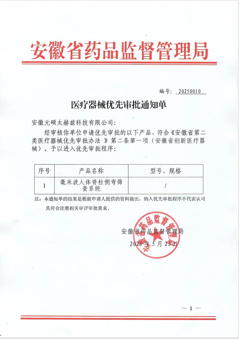 据悉,获得本轮融资后,元硕太赫兹将加快推进创新医疗器械取证、中试产线建设与量产落地,并联动上下游合作方,构建覆盖筛查、诊断、干预、康复的脊柱健康全链条服务体系,助力合肥打造太赫兹成像高端医疗器械产业高地,为我国健康中国2030建设贡献科技力量。