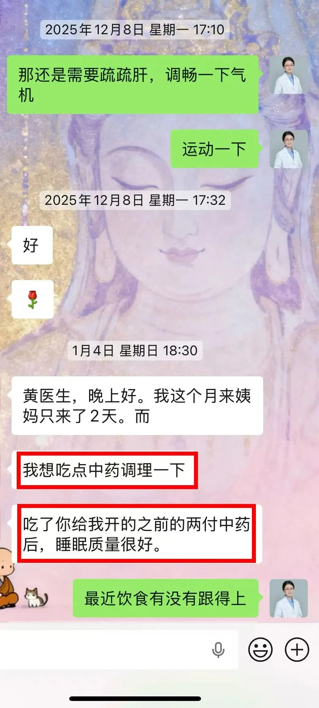 她着急地说:“黄医生,月经又出问题了?你快再给我开点药!” 我先安抚她的情绪:“别慌,这是身体在‘提醒’我们——你的情绪问题还没完全调好,肝气郁结影响了气血运行,才导致经期缩短。”