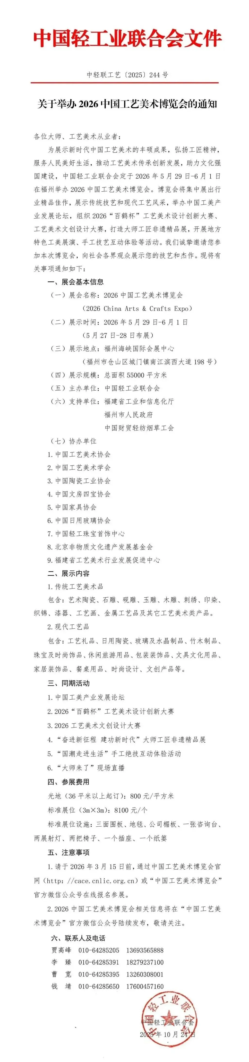 为深入贯彻党中央、国务院关于传统工艺振兴的战略部署,持续擦亮中国工艺美术文化名片,推动行业繁荣发展,中国轻工业联合会定于2026年5月29日-6月1日,在福州举办 2026 第六届中国工艺美术博览会(CACE)。本届博览会将以更高品质、更优体验和崭新亮点,打造一场引领工艺美术行业的展示盛会,为文化强国建设注入新的工美力量。
