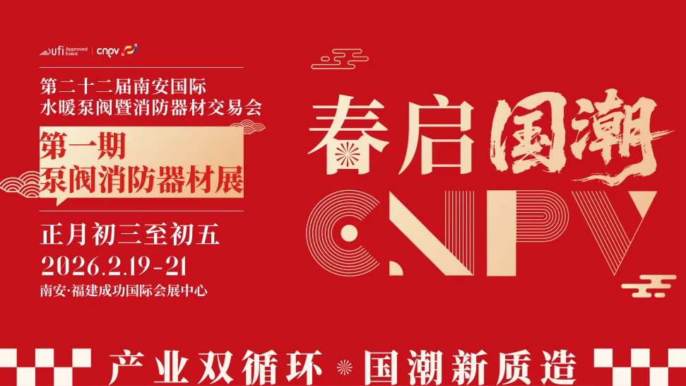 2026年2月19日-21日(正月初三至初五), 第二十二届CNPV第一期·泵阀消防器材展 以 “产业双循环·国潮新质造” 为主题,规划展览面积38000平方米,国际标准展位1500+个,设置泵阀、消防器材、铜阀门三大展示区,共计十大展馆。