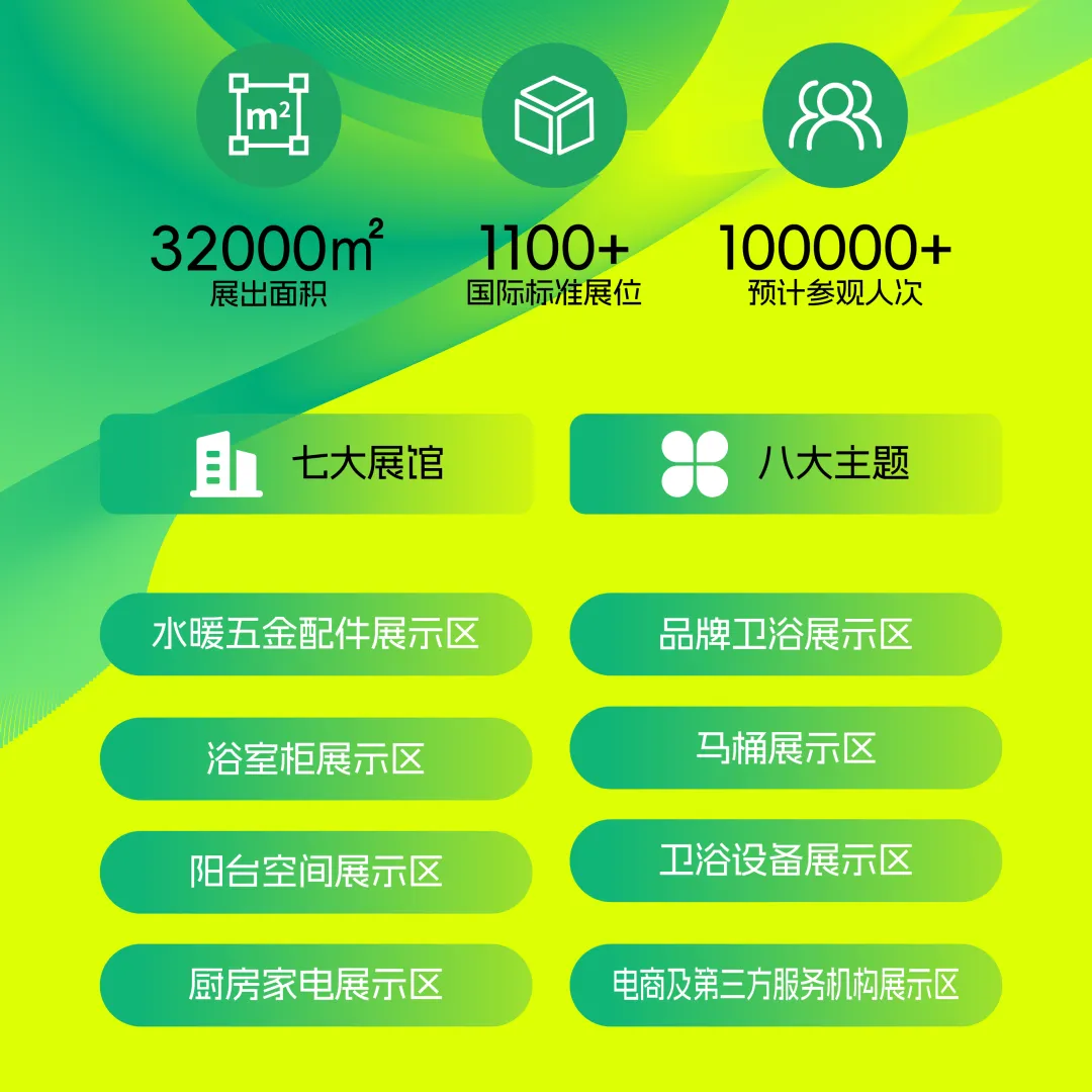第二十二届CNPV第二期·卫浴五金展 以“新质卫来,内外循环”为主题,展出产品覆盖全产业细分领域,规划展览面积32000平方米,国际标准展位1100+个,设置八大主题、七大展馆。