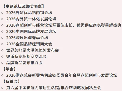 2026年展会同期将举办20余场主题论坛、颁奖盛典及特色私董会,汇聚行业大咖,聚焦热点趋势,致力于打造家居及时尚生活行业极具创新活力的产业链生态平台。