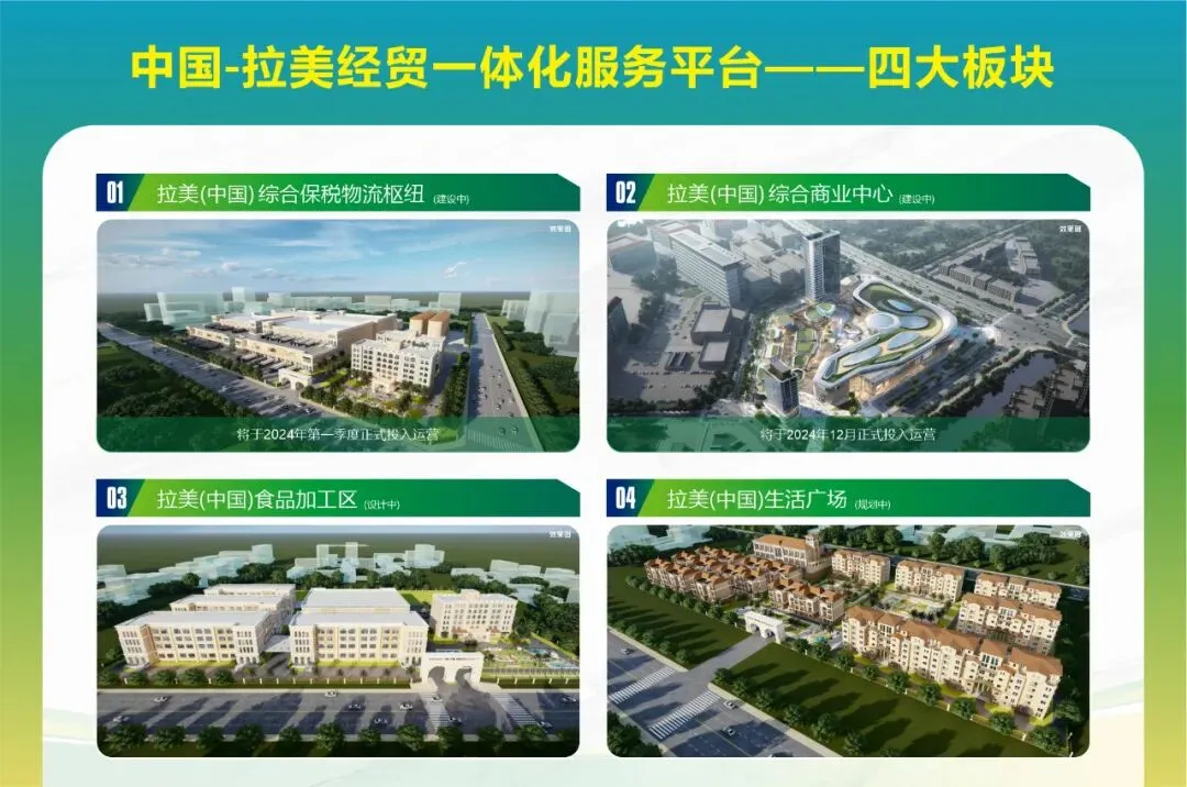 以拉美文化交流、商品展销、行业峰会、技术培训等为主要功能的拉美(中国)综合商业中心预计今年12月31日封顶,2024年12月投入使用。