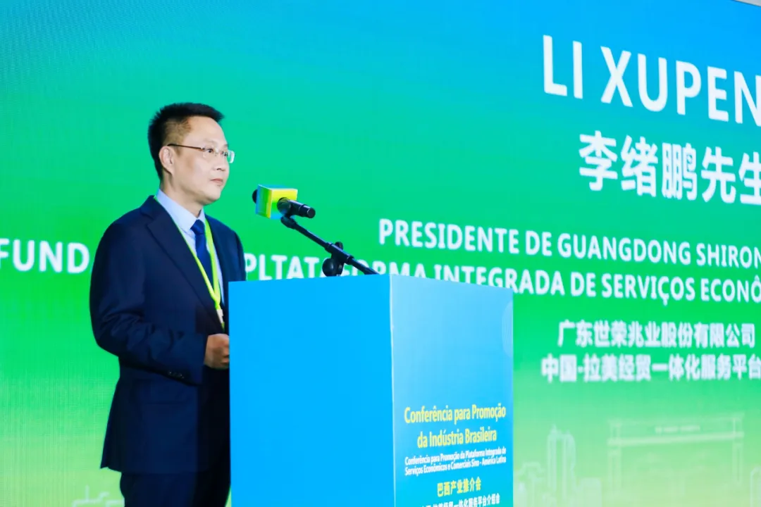 广东世荣兆业有限公司总裁、中国-拉美经贸一体化服务平台发起人李绪鹏在推介会现场致辞