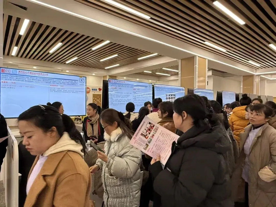 活动现场暖意融融,人气十足。都匀黔灵女家政服务有限公司、都匀嘉之益月嫂、贵州知心月嫂家政有限责任公司等5家都匀本地优质家政企业整齐列队,通过展板清晰展示着岗位需求、薪资待遇和职业发展路径。来自全市的100余名“桥城管家(专业管理家)”培训学员穿梭在各个展位间,主动向企业招聘负责人介绍自己的培训经历和技能特长,从母婴护理的细节操作到居家保洁的服务规范,学员们自信的表述赢得了企业的认可。