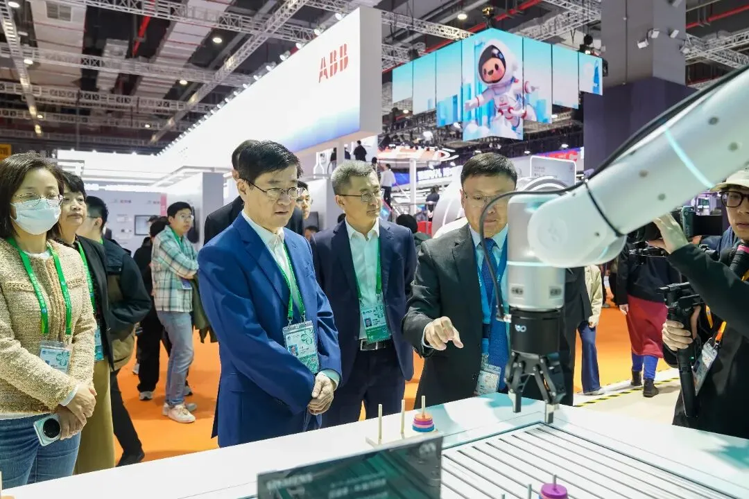 本届进博会,金山区共有19家企业和机构参展,包括生物医药、高端装备、文旅产业等领域。刘健先后走访强生、丰田、西门子、蓝滨、乐高、妙可蓝多等企业展台,现场观摩各企业展示的前沿技术与创新成果,面对面回应企业关切,并围绕行业趋势、技术路径与潜在合作机遇展开了深入交流。