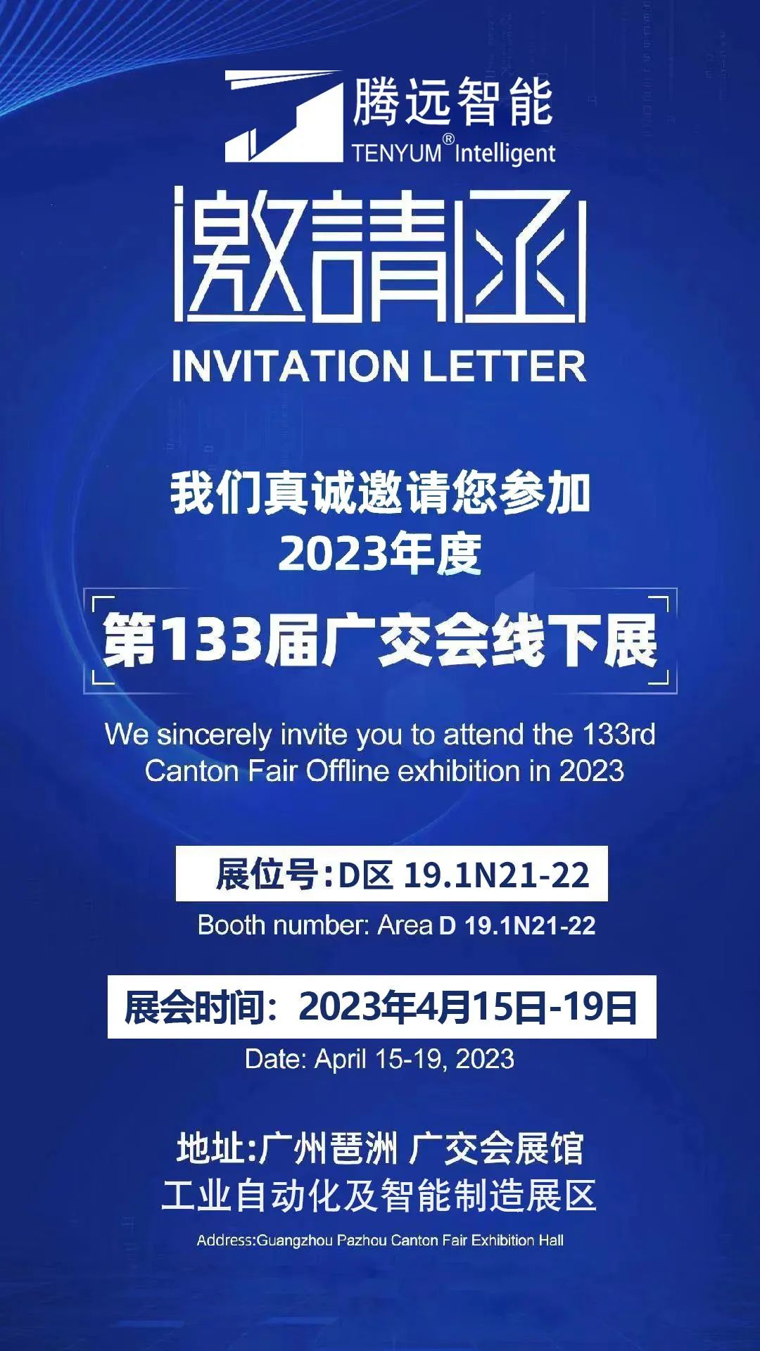 第133届广交会将于2023年4月15日正式开启,湖南腾远智能设备有限公司诚挚邀请您到会与交流!