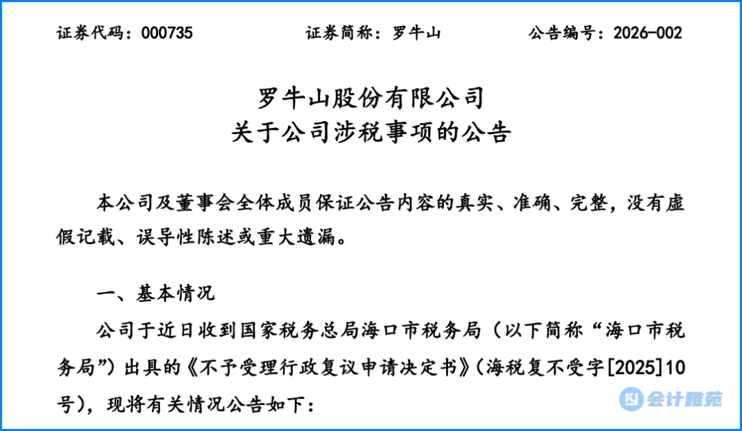 公司于近日收到国家税务总局海口市税务局(以下简称“海口市税务局”)出具的《不予受理行政复议申请决定书》(海税复不受字[2025]10号),现将有关情况公告如下: