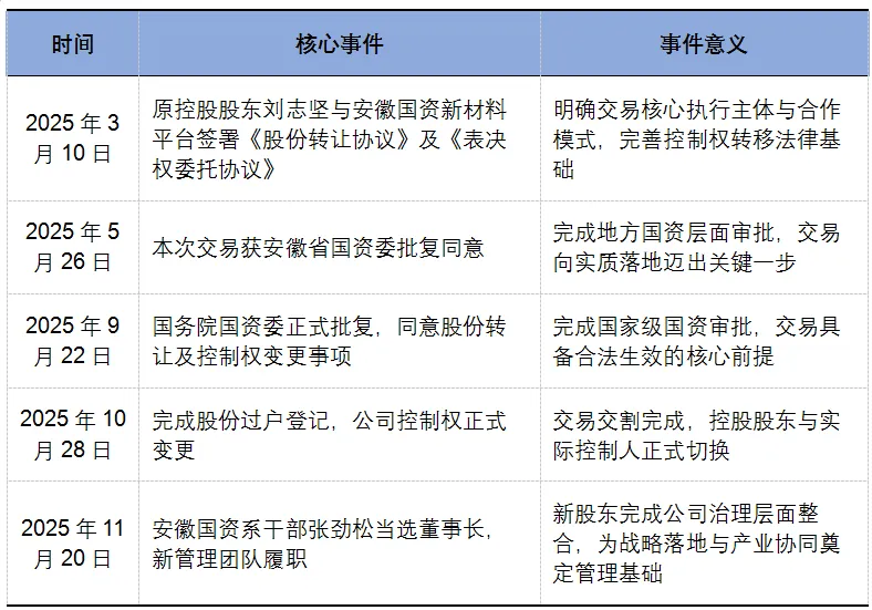 本次控制权变更通过“协议转让+表决权委托”组合方案推进,历经多轮磋商与审批,核心时间线如下: