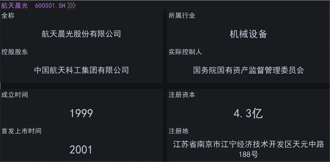 航天晨光全称叫做航天晨光股份有限公司,注册地在江苏省南京市,股票2001年在上交所上市,公司的控股股东是中国航天科工集团,实际控制人是国务院国资委,组织形式属于央企子公司,审计机构是中审众环会计师事务所。
